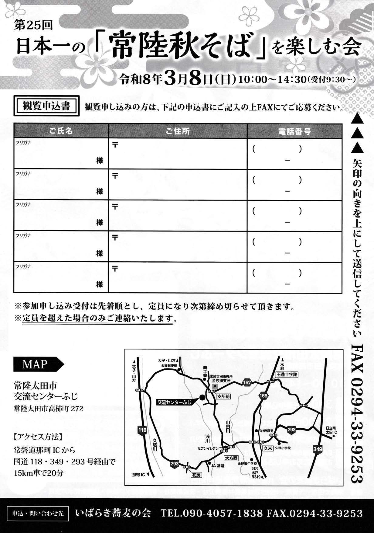 2.会 場 : 常陸太田市交流センターふじ 3.申込み : いばらき蕎麦の会事務局