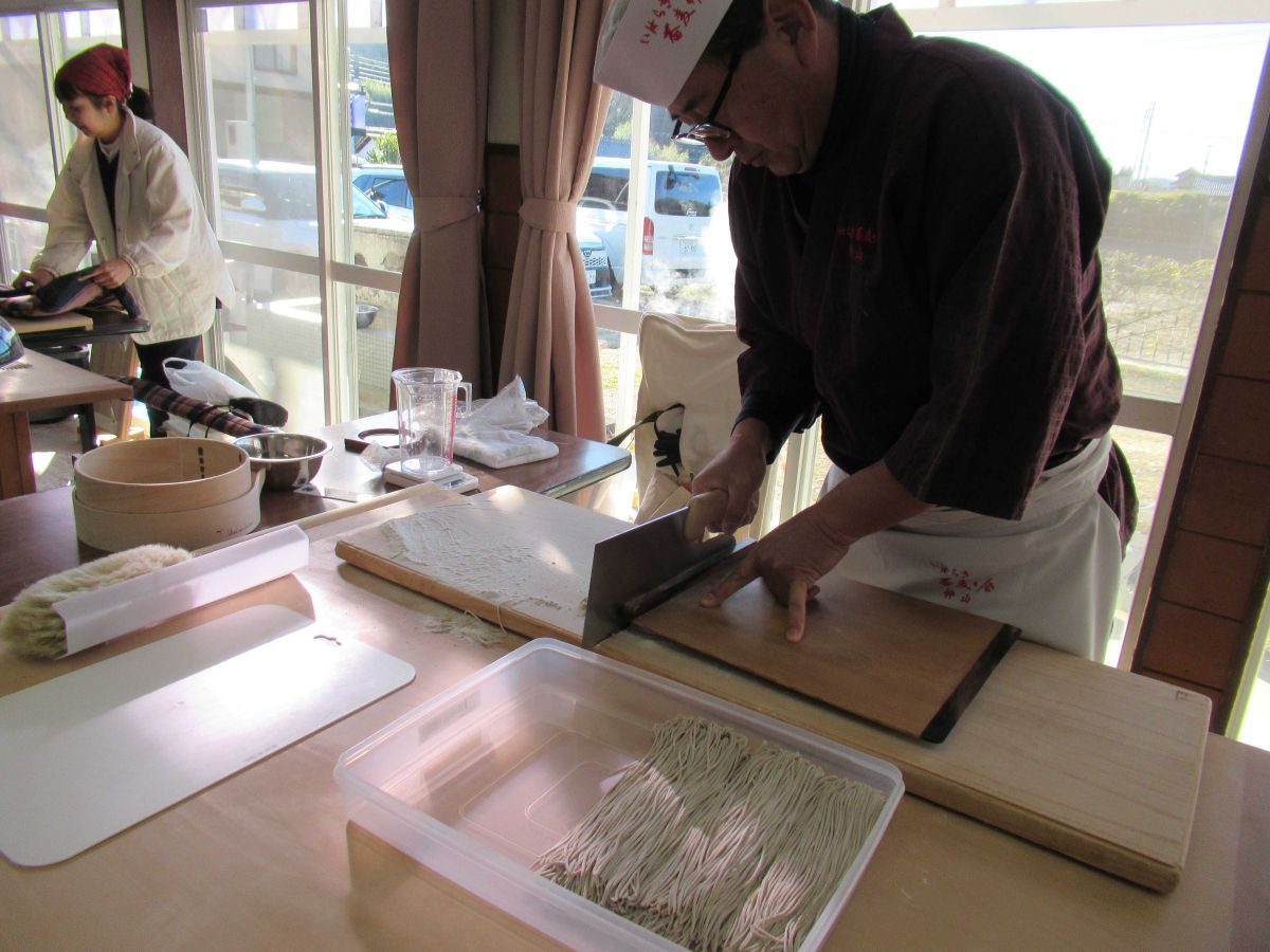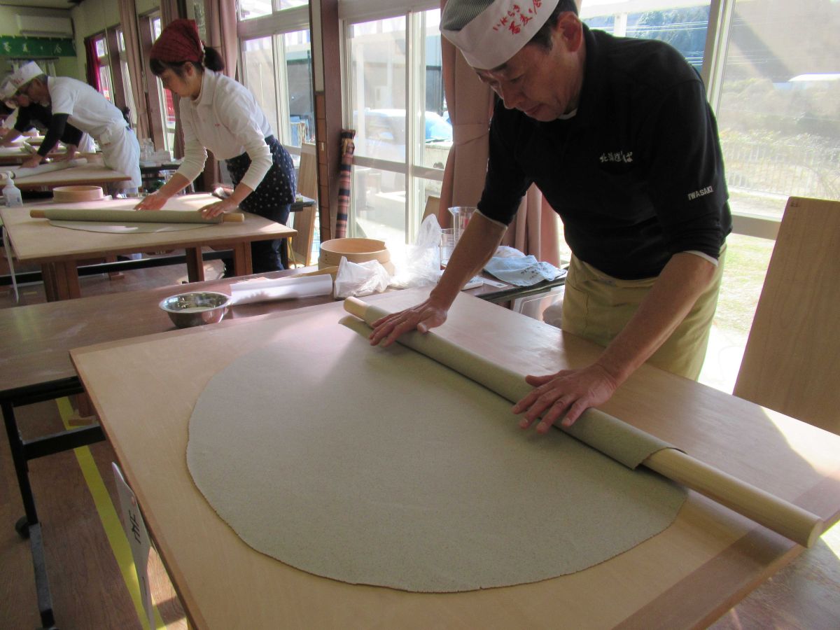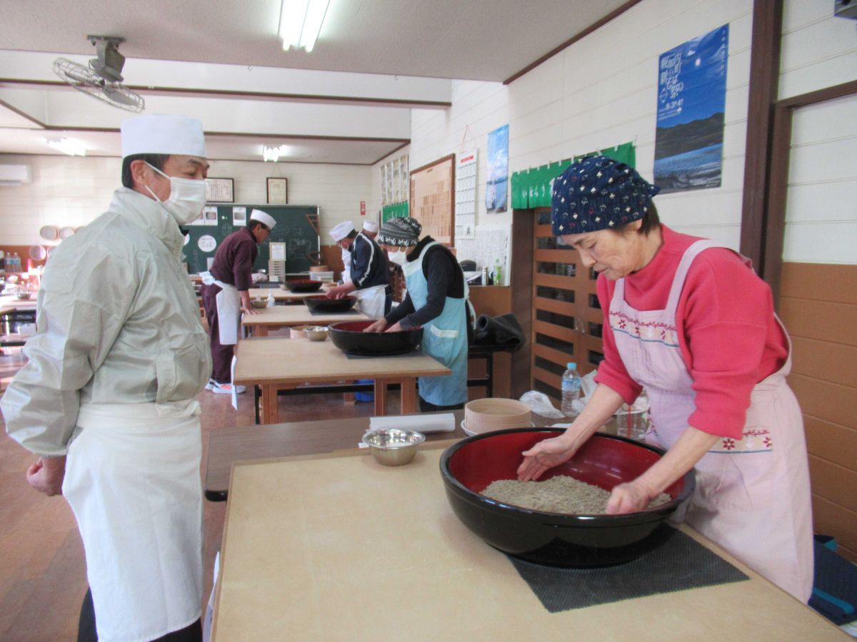 そば打ちは、玄曳きしたそば粉を一本棒丸延しで打ちました。普段のそば打ちとまた違って、皆さん楽しそうです✨