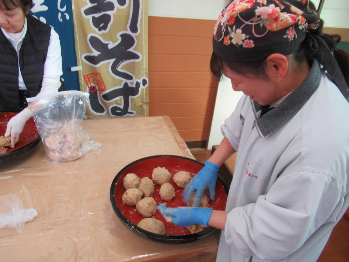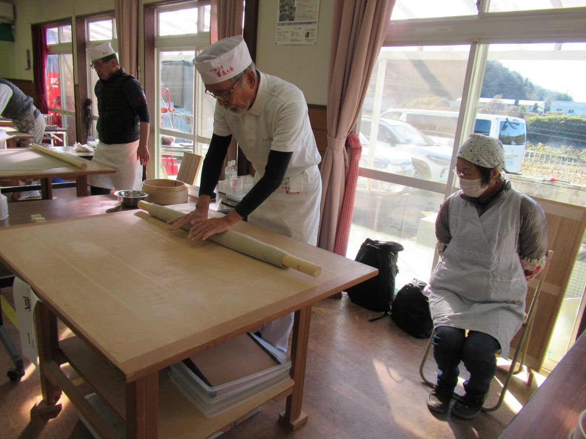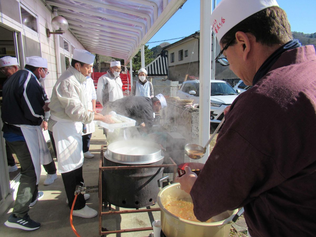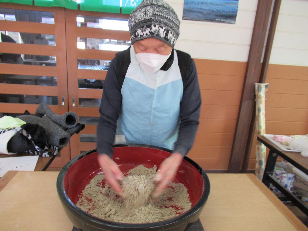 令和8年1月24日(土)に、味噌造り&そば打ち体験会を開催しました✨ 味噌造りは、今年で3年目になります。なんで味噌~? と不思議に思うかもしれませんが、自分達で作った味噌でそばのつゆを作りたいと言うのが始まりでした。かつお節でだしを取り、そこに味噌を合わせ5分ほど弱火で煮詰め、布で濾します。これを煮貫と言います。見た目は、しょうゆで作ったつゆと変わりません。1年物と2年物の味噌を使って2種類のつゆを作りましたが、けっこう美味しかったです(^_^)