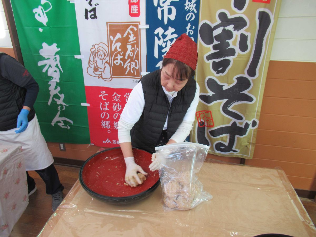 味噌造りの後、昼食に2種類のつゆと味噌けんちんで常陸秋そばをいただきました(^-^) 美味しかったです✨